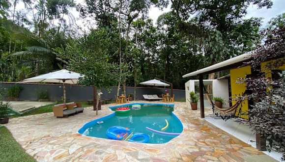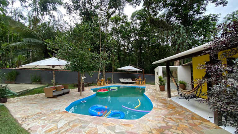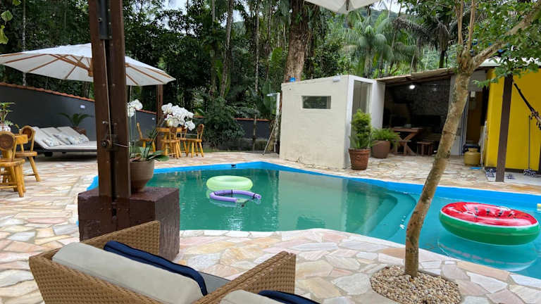 Das Chácara Paraíso Escondido bietet Übernachtungsmöglichkeiten in einem gemütlichen Ferienhaus mit privatem Pool und Garten. Die Unterkunft ist klimatisiert und ermöglicht den Gästen eine entspannte Atmosphäre.