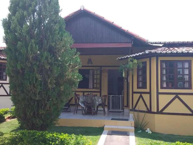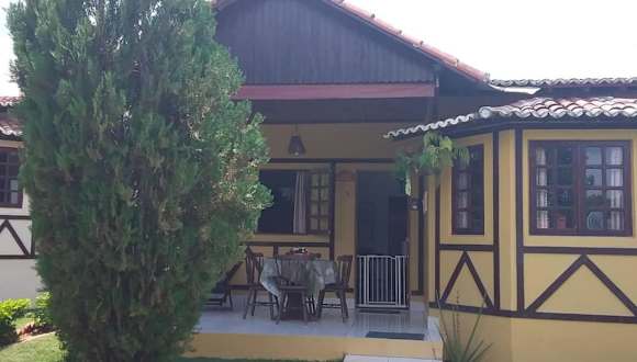 Das Chalé em um privê tranquilo e agradável hat eine heimelige Atmosphäre und ist von einem Garten umgeben. Die Unterkunft bietet eine Terrasse mit Blick auf den Pool und sorgt für eine entspannte Ferienatmosphäre.