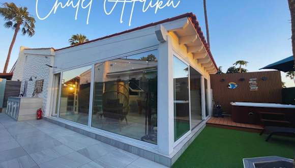 Das Chalet Afrika con Jacuzzi hat sich in Maspalomas, 2,8 km vom Strand Playa del Inglés entfernt, gelegen. In der Nähe befinden sich das Einkaufszentrum Yumbo Centrum und Aqualand Maspalomas, welche sich 1,7 km respektive 3,5 km entfernt befinden. Der nächstgelegene Flughafen ist der Flughafen Gran Canaria, 29 km entfernt.