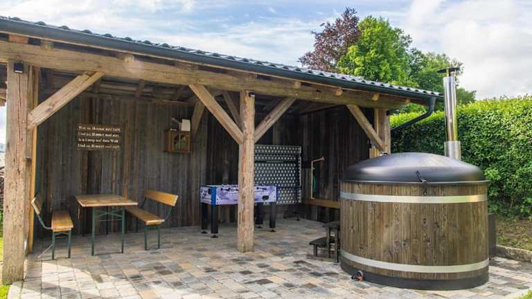 Das Chalet am Ölberg mit Badefass und Altholzsauna bietet eine heimelige Atmosphäre und verfügt über eine Terrasse sowie eine Sauna, ideal für Entspannung nach einem aktiven Tag.
