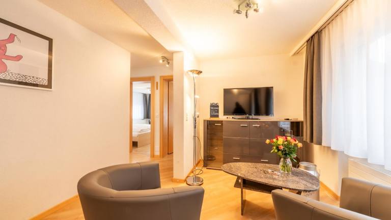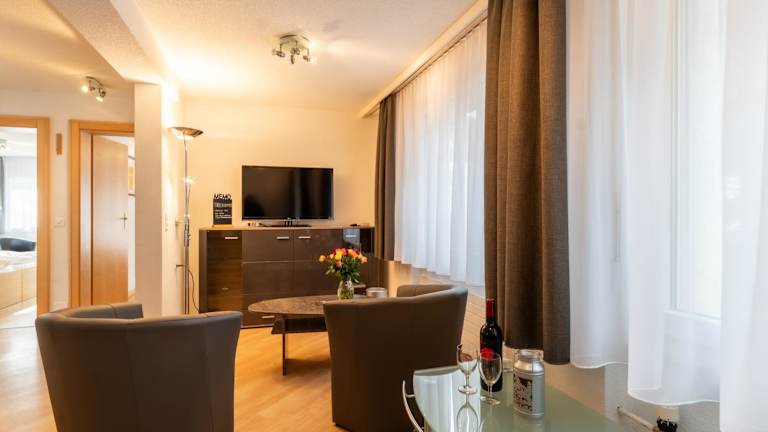Die Ferienwohnung verfügt über zwei Schlafzimmer, ein Wohnzimmer mit einem Flachbild-TV sowie eine gut ausgestattete Küche, die einen Kühlschrank und einen Geschirrspüler umfasst. Das Badezimmer ist mit einer Dusche ausgestattet. Handtücher sowie Bettwäsche werden zur Verfügung gestellt.
