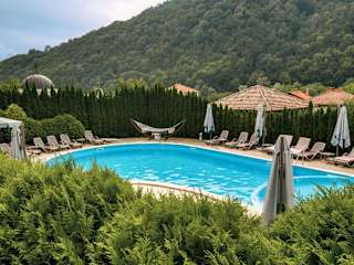 Das Chalet Balkan bietet eine Vielzahl von Annehmlichkeiten, darunter einen saisonalen Aussenpool, ein Fitnesscenter sowie einen Garten. Ein Restaurant und eine Bar sind ebenfalls vorhanden. Zur Entspannung stehen Sauna und Whirlpool zur Verfügung. Die Unterkunft verfügt zudem über ein Spa-Center, einen Karaoke-Bereich und einen Kinderclub.