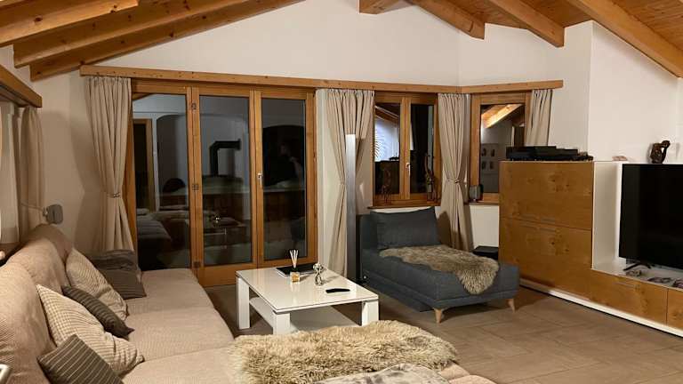 Das Chalet bietet Platz in vier Schlafzimmern und beinhaltet vier Badezimmer mit Dusche und Badewanne. Es verfügt über ein Wohnzimmer mit einem Sitz- und Essbereich. Die gut ausgestattete Küche bietet einen Kühlschrank, Geschirrspüler und Ofen. Zur Unterhaltung stehen ein Flachbild-TV, Blu-ray-Player, DVD-Player, CD-Player sowie eine Spielekonsole zur Verfügung.