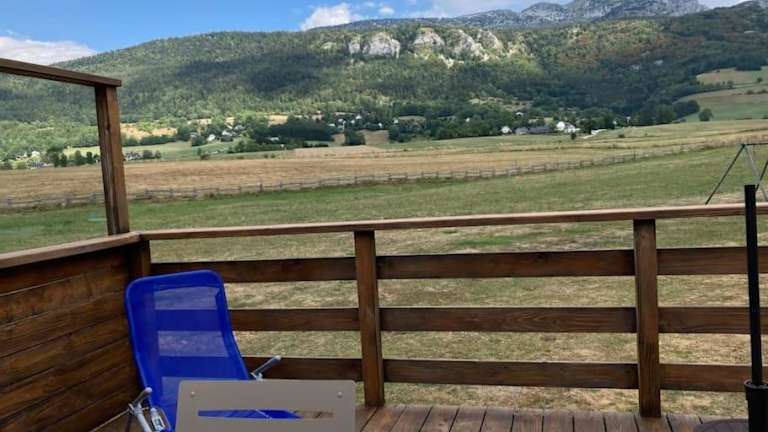 Das Chalet cosy, belle vue, dans le massif du Vercors bietet eine heimelige Unterkunft mit Gartenblick und einer attraktiven Terrasse, von der aus die Gäste die Berglandschaft geniessen können. Die Übernachtungsmöglichkeiten sind in einem gemütlichen und einladenden Stil gestaltet.