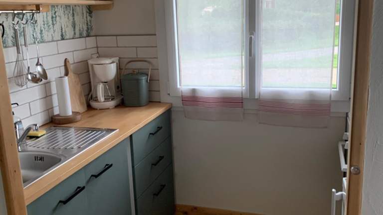Das Chalet verfügt über ein Schlafzimmer, eine Küche und ein Badezimmer mit einer Dusche. Zusätzliche Annehmlichkeiten umfassen eine Kaffeemaschine, einen Haartrockner und eine Waschmaschine. Handtücher und Bettwäsche werden in der Unterkunft angeboten. Für die Gäste steht ein Grill zur Verfügung.