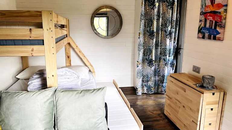 Das Chalet verfügt über ein Schlafzimmer, eine Küche mit Kühlschrank und Ofen, sowie ein Badezimmer mit Dusche und kostenlosen Pflegeprodukten. Handtücher und Bettwäsche werden bereitgestellt. Die Unterkunft ist als Nichtraucherunterkunft konzipiert und bietet Familienzimmer.