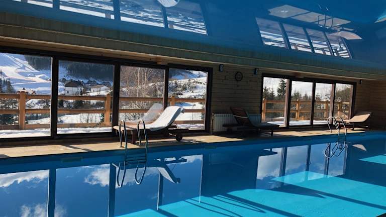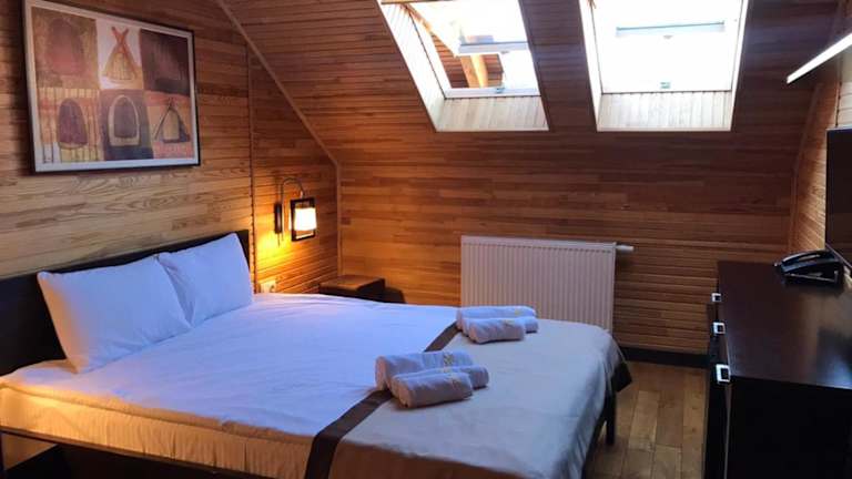 Das Chalet du Mont ist die ideale Unterkunft für einen unvergesslichen Aufenthalt im Skigebiet Bukovel. Hier können Sie nicht nur die beeindruckende Landschaft genießen, sondern auch den Komfort und die Annehmlichkeiten eines modernen Hotels. Entspannen Sie auf der Sonnenterrasse, essen Sie im hoteleigenen Restaurant zu Abend oder genießen Sie einen Drink an der Bar. Die Zimmer sind komfortabel eingerichtet und bieten Annehmlichkeiten wie Flachbild-TV, Bademäntel und Hausschuhe. WLAN steht Ihnen in allen Bereichen des Hotels kostenfrei zur Verfügung. Die 24-Stunden-Rezeption steht Ihnen jederzeit zur Verfügung und das Hotel bietet Ihnen auch eine Skiaufbewahrung und einen Fahrradverleih.