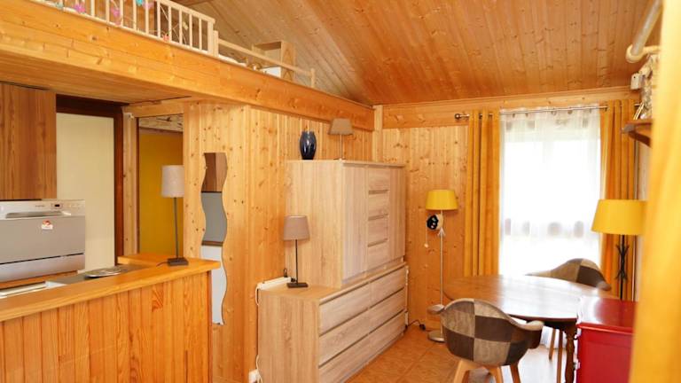 Das Chalet umfasst ein Schlafzimmer sowie eine Küchenzeile, die mit einem Kühlschrank und einem Geschirrspüler ausgestattet ist. Es gibt ein Badezimmer mit einer Badewanne oder Dusche und einem Haartrockner. Handtücher und Bettwäsche werden bereitgestellt. Das Chalet ist zusätzlich mit kostenlosem Wifi und einem Grill ausgestattet.