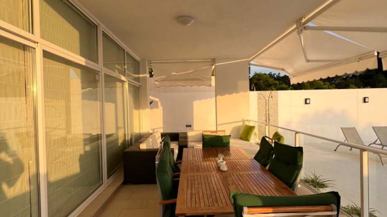Das Ferienhaus bietet direkten Zugang zu einer Terrasse mit Poolblick und besteht aus 3 Schlafzimmern sowie einer voll ausgestatteten Küche. Des weiteren stehen den Gästen Handtücher und Bettwäsche zur Verfügung. Das Chalet ist klimatisiert und bietet somit eine angenehme Bequemlichkeit.
