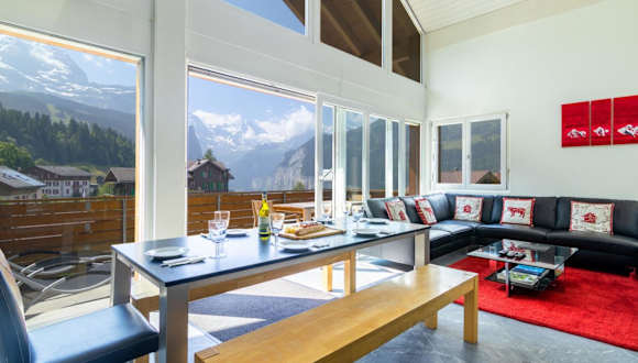 Chalet Hannegg Penthouse befindet sich in Wengen im Kanton Bern, einem autofreien Dorf, welches nur mit dem Zug erreichbar ist. Die Zugfahrt nach Wengen dauert etwa 15 Minuten vom Bahnhof Lauterbrunnen. In der Umgebung gibt es zahlreiche Möglichkeiten für Aktivitäten wie Wandern, Skifahren und Velofahren.