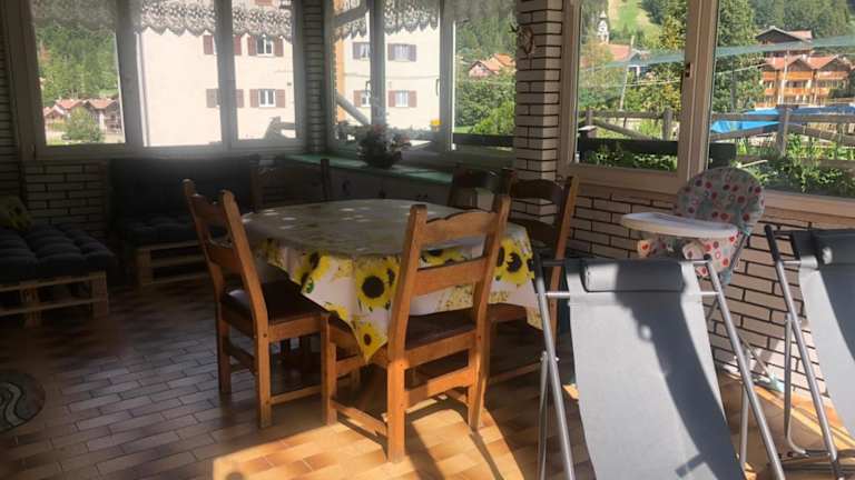 Das Chalet bietet zwei Schlafzimmer, ein Wohnzimmer mit Flachbild-TV, sowie eine gut ausgestattete Küche mit Kühlschrank und Ofen. Ein Badezimmer mit Bidet ist ebenfalls vorhanden. Handtücher und Bettwäsche werden bereitgestellt. Eine Terrasse mit Stadtblick rundet das Angebot ab.