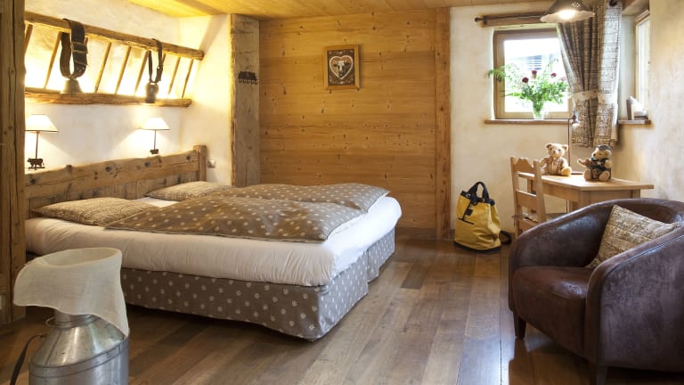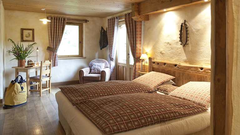 Das Chalet-Hôtel Les Fermes de Pierre et Anna ist ein historisches Holzgebäude aus dem 18. Jahrhundert, welches mit modernen und traditionellen Techniken restauriert wurde. Es bietet eine heimelige Atmosphäre mit rustikalem Charme und modernen Annehmlichkeiten.