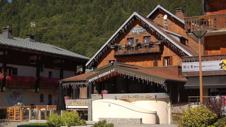 Das Chalet Hotel Régina befindet sich im Zentrum des Resorts Les Gets, direkt gegenüber den Skipisten und -liften. Die Lage ermöglicht einen einfachen Zugang zu Freizeitaktivitäten in der Umgebung.