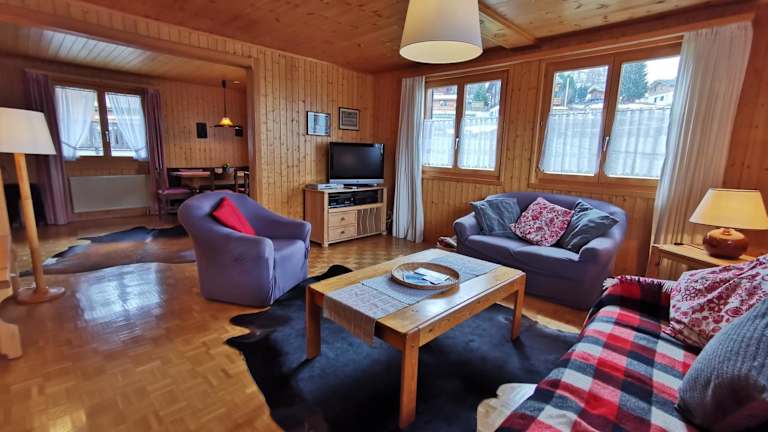 Das Chalet ist ausgestattet mit 3 Schlafzimmern und 1 Badezimmer. Es bietet Bettwäsche, Handtücher, einen Flachbild-TV mit Satellitenkanälen, einen Essbereich sowie eine voll ausgestattete Küche. Eine Terrasse mit herrlichem Bergblick und ein Balkon mit einer Kaffeemaschine sorgen für zusätzlichen Komfort.
