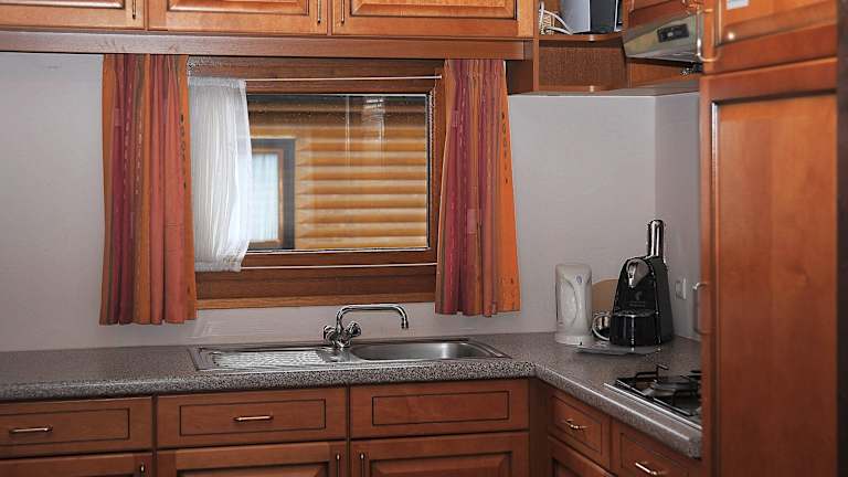 Das Chalet verfügt über zwei Schlafzimmer und eine voll ausgestattete Küche mit Kühlschrank und Geschirrspüler. Dies ermöglicht den Gästen, ihre Mahlzeiten selbst zuzubereiten und die Annehmlichkeiten einer eigenen Unterkunft zu nutzen.