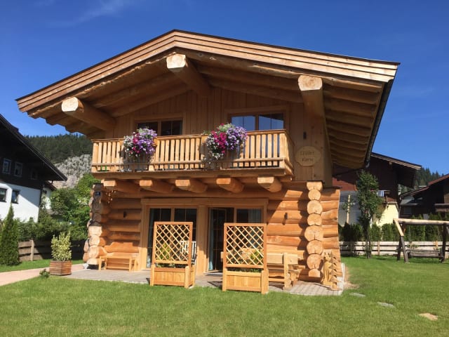 EINWEIHUNG Chalet KARIN - November 2018 Unser Holzblockhaus, das Chalet Karin ist seit Anfang November vom Bauherrn Michi Waltl, dem Pillerseetalholz übergeben worden. Die Einweihung fand am 2.November mit den ausführenden Firmen aus dem Pillerseetal statt und alle waren sehr angetan, wie super toll dieses Holzblockhaus geworden ist! Wir freuen uns sehr auf die kommende Wintersaison, unseren Gästen dieses erlebnisreiche Holzhaus vorzustellen - überzeugen Sie sich selbst von den Vorteilen und Vorzügen dieses "Bio-Hauses" - ein echter Genuss für Freunde und Familien! Chalet für 4-6 Personen (ca. 95 m2 Wohnfläche) Das exklusive und familienfreundliche Chalet KARIN ist derzeit einmalig in Hochfilzen. Das natürlich, biologisch hergestellte Holzblockhaus aus dem heimischen Pillerseetalholz, die individuelle Holzblockbauweise, die schallschutz-isolierten Fenster und Türen, mit natürlicher Schafswolle isoliert, sorgen für ein angenehmes Raumklima. Fühlen Sie sich wie zu Hause und genießen Sie das perfekte Urlaubsparadies. Der ideale Ausgangspunkt zum Skifahren und Wandern rund um Hochfilzen in Tirol im Pillerseetal und der Bergwelt der Kitzbühler Alpen. Unser Chalet bietet Ihnen: Ca. 95 qm Wohnfläche auf 2 Ebenen mit Platz bis zu 6 Personen Großzügiger Wohn-/Essbereich mit Glas-Kaminofen 2 Schlafzimmer mit exklusiver Einrichtung, sowie Boxspringbetten 2 Badezimmer WC-Urinal/Dusche, Doppelwaschbecken Voll ausgestattete Küche mit Koch-Insel (Geschirrspüler, Induktionsherd, Backofen, Kühlschrank mit Gefrierschrank etc.) Großer Balkon, ca. 12 qm und Terrasse mit Garten, jeweils überdacht Kostenlose Faß-Sauna- und Grillhüttenbenutzung, sowie gratis WLAN Carportnutzung und ein zusätzlicher Stellplatz gratis, Skikeller - Skischuhtrockner Ausstattung - Erdgeschoss: Ein großer Wohnraum mit Wohnlandschaft (Schlafcouch für 2 Personen) und Kabel-TV/Flachbildschirm, getrennt durch einen modernen Kaminofen mit Panorama-Glasscheiben. Im Erdgeschoss komplett Fußbodenheizung. Der großzügige Essbereich mit Holztisch, Sitzbank und die moderne, abgestimmte Küche mit Kochinsel lädt zum gemütlichen „Familiendinner“ ein. Abschalten und genießen mit einem Blick durch die großen Fensterfronten in die Natur und Bergwelt. Gemütliche Entspannung in unserem HolzHaus - im Chalet KARIN, im Sommer die Wiesen in Ihrer Blütenpracht endlos erscheinen, so wirkt in der kalten Jahreszeit, als würde der Gast in der Ruhe des Winters den Schnee fallen hören. Im eigenen Chalet - den Luxus zum Anfassen Ausstattung - Obergeschoss: Im Obergeschoss sind die 2 Schlafzimmer, alle mit Kabel-TV ausgestattet. Jedes Schlafzimmer ist individuell und liebevoll eingerichtet mit großzügigem Kleiderschrank, jeweils einem Boxspringbett und Nachtkästchen. Die Betten sind mit Bettwäsche bezogen; Hand- und Duschtücher vorhanden. Das urige Badezimmer mit großzügiger Dusche, einem WC und Stein-Doppelwaschbecken, sowie einem Haartrockner. Von den beiden Schlafzimmern ermöglicht ein Ausgang auf den ca. 12 m2 großen überdachten Balkon. Im Schlafzimmerbereich befindet sich eine komfortable Wandheizung. Gemütlichkeit im Familienkreis. Gastfreundschaft besteht aus Wärme, Genuss und gemütlicher Atmosphäre.