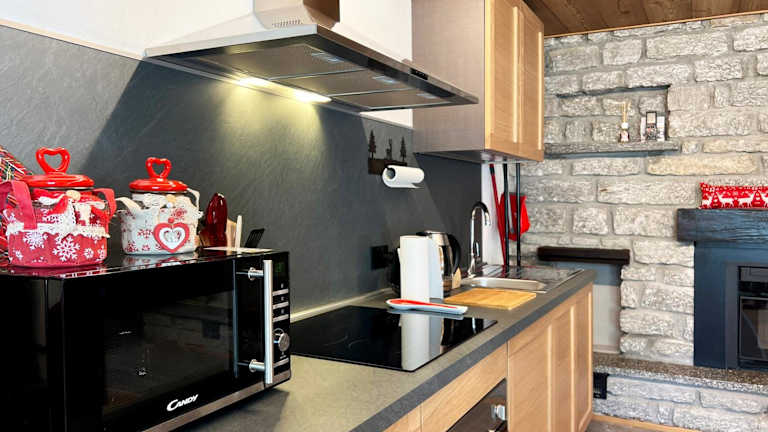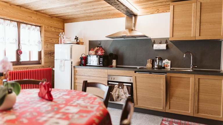 Das Chalet verfügt über zwei Schlafzimmer, ein Wohnzimmer, einen Satelliten Flachbild-TV und eine gut ausgestattete Küche. Es stehen zwei Badezimmer mit Bidet und Dusche zur Verfügung. Bettwäsche und Handtücher werden bereitgestellt. Farbliche Akzente und viel Tageslicht verleihen den Zimmern eine einladende Bequemlichkeit.