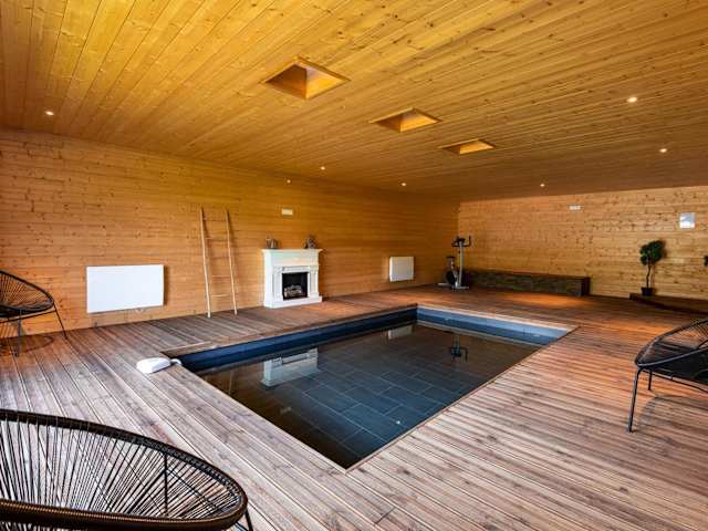 Im Chalet können Gäste im beheizten Innenpool schwimmen oder die Umgebung beim Wandern erkunden. Für Familien stehen Spielgeräte für Kinder zur Verfügung.