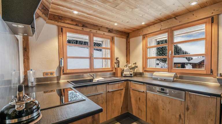 Das Chalet verfügt über eine moderne Küche mit Kühlschrank, Geschirrspüler und Ofen, sowie über zwei Schlafzimmer und ein Badezimmer mit Dusche und Badewanne. Das Wohnzimmer bietet einen Sitzbereich und einen Essbereich. Zu den Annehmlichkeiten gehören auch eine Spielekonsole sowie eine Terrasse mit Gartenblick.