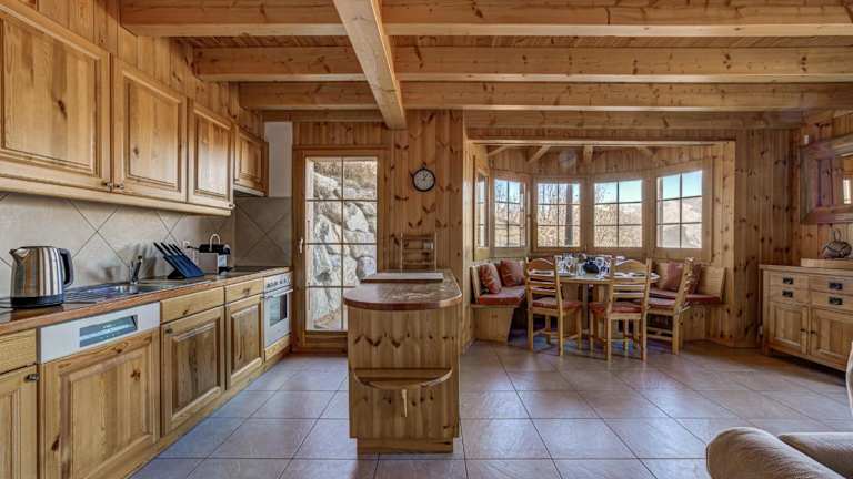Die Unterkunft bietet eine gut ausgestattete Küche mit Kühlschrank und Geschirrspüler, sodass sich die Gäste selbst verpflegen können. Zudem steht ein Grill zur Verfügung, um die warmen Sommerabende im Freien zu geniessen.