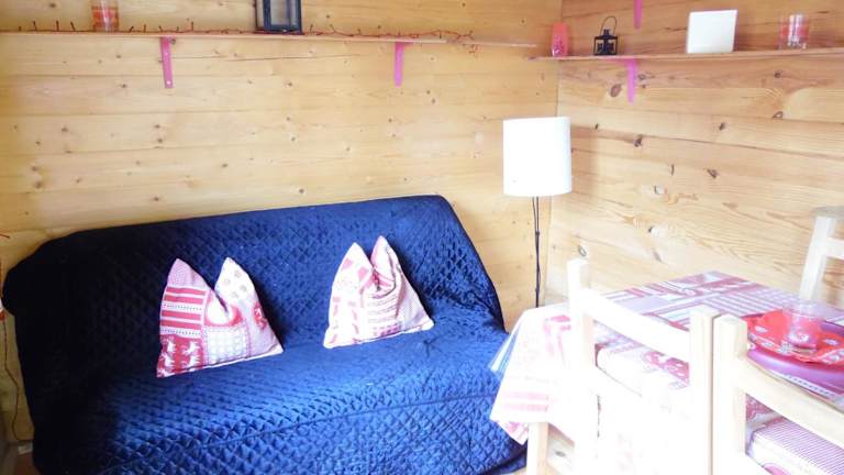 Das Chalet umfasst ein Schlafzimmer und eine voll ausgestattete Küche mit Kühlschrank und Ofen. Gäste profitieren zudem von kostenlosem Wifi und schöner Aussicht auf die umliegenden Berge sowie den See.