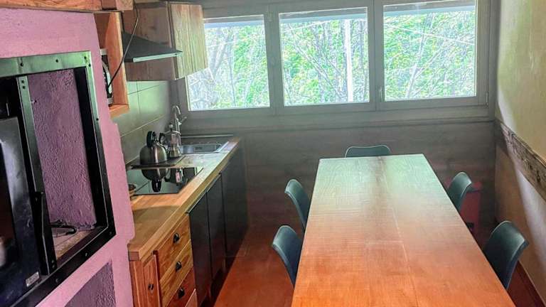 Eine Gemeinschaftsküche ist vorhanden, in der die Gäste ihre Mahlzeiten selbst zubereiten können. Verpflegungsmöglichkeiten sind in der Umgebung verfügbar, jedoch keine spezifischen Angaben zu weiteren gastronomischen Angeboten in der Unterkunft liegen vor.