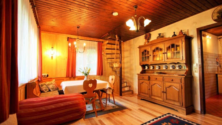 Das Chalet bietet Platz in drei Schlafzimmern sowie in einem Wohnzimmer mit TV. Es verfügt über ein Badezimmer mit Dusche und eine gut ausgestattete Küche, inklusive Kühlschrank und Geschirrspüler.