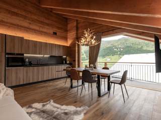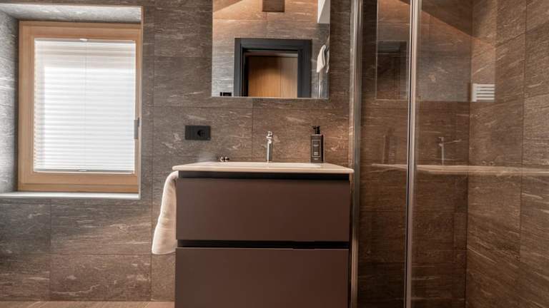 Das Chalet besteht aus zwei Schlafzimmern, einem Wohnzimmer und einer voll ausgestatteten Küche mit Kühlschrank und Kaffeemaschine. Es gibt zwei Badezimmer mit Bidet und Dusche sowie einen Flachbild-TV.