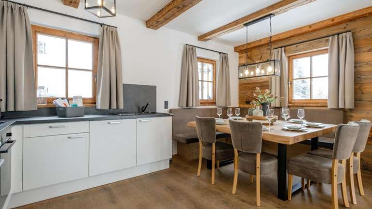 Das Chalet besteht aus 5 Schlafzimmern sowie einem Wohnzimmer. Eine voll ausgestattete Küche mit Kühlschrank und Kaffeemaschine steht zur Verfügung. Es gibt 4 Badezimmer mit einer Dusche. Handtücher und Bettwäsche werden bereitgestellt.