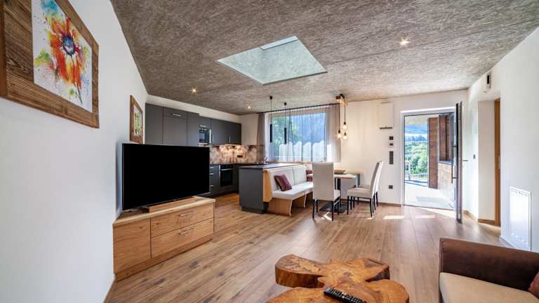 Die Ferienwohnung umfasst 1 Schlafzimmer und 1 Badezimmer. Sie ist ausgestattet mit Bettwäsche, Handtüchern und einem TV mit Satellitenkanälen. Eine voll ausgestattete Küche steht den Gästen zur Verfügung, ebenso eine Terrasse mit herrlichem Bergblick.