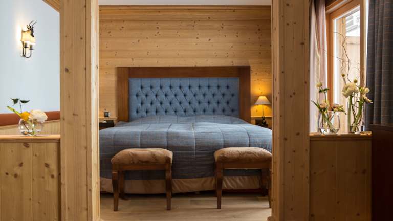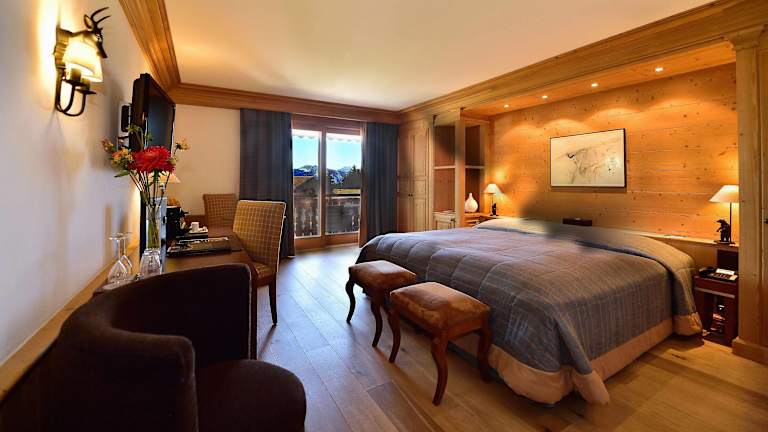 Die Zimmer sind in alpenländischem Stil eingerichtet und bieten eine heimelige Atmosphäre. Jedes Zimmer verfügt über einen Balkon, Heizung, ein Doppelbett oder Kingsize-Bett sowie Annehmlichkeiten wie einen Safe, eine Minibar, einen Kühlschrank, eine Tee-/Kaffeemaschine und ein Bügelset. Für zusätzlichen Komfort sorgen ein Telefon, ein TV-Gerät mit Satelliten-/Kabelempfang und kostenloses WLAN. Auch Hausschuhe und ein abendlicher Gute-Nacht-Service stehen den Gästen zur Verfügung. Die Badezimmer sind mit Dusche und Badewanne, Haartrockner, Bademänteln und Kosmetikartikeln ausgestattet.