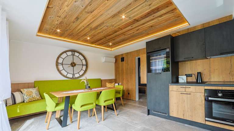 Das Chalet verfügt über 2 Schlafzimmer und ein Badezimmer, welches mit einem Whirlpool ausgestattet ist. Die Küche ist mit einer Minibar eingerichtet und das Chalet ist klimatisiert.
