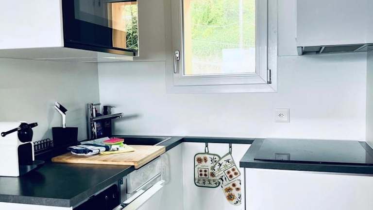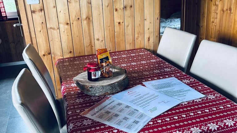 Das Chalet besteht aus 2 Schlafzimmern, einem Wohnzimmer und einer voll ausgestatteten Küche mit Kühlschrank und Kaffeemaschine. Des Weiteren steht ein Badezimmer mit Dusche und Whirlpool zur Verfügung. Handtücher und Bettwäsche werden bereitgestellt, und es gibt eine Terrasse, die zum Entspannen einlädt.