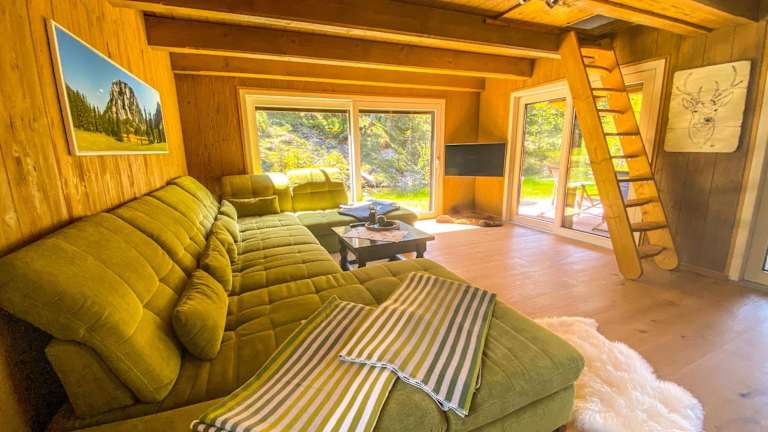 Das Chalet verfügt über zwei Schlafzimmer, ein Wohnzimmer, eine gut ausgestattete Küche und ein Badezimmer mit Dusche und Whirlpool. Zur Ausstattung gehören ein Satelliten Flachbild-TV sowie Handtücher und Bettwäsche. Eine Terrasse mit Bergblick lädt zum Verweilen ein.