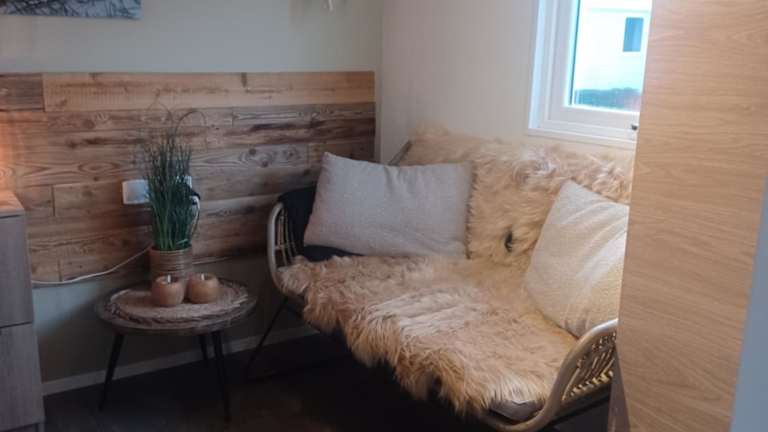 Das Chalet umfasst zwei Schlafzimmer und ein Badezimmer. Es ist ausgestattet mit Bettwäsche, Handtüchern, einem Flachbild-TV mit Kabelkanälen und einer voll ausgestatteten Küche. Eine Terrasse mit Gartenblick rundet die Ausstattung ab. Für zusätzlichen Komfort werden Bettwäsche und Handtücher gegen Aufpreis bereitgestellt.