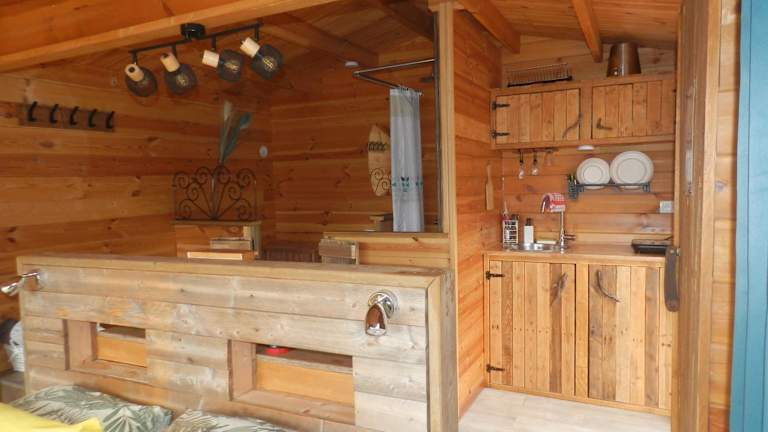 Das Chalet Zenitude bietet ein Schlafzimmer sowie eine Küchenzeile, die mit einem Kühlschrank und einer Mikrowelle ausgestattet ist. Bei der Ankunft liegen Handtücher und Bettwäsche bereit. Ein Badezimmer mit Dusche rundet die Ausstattung ab.