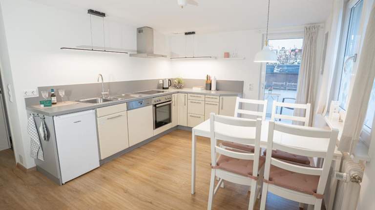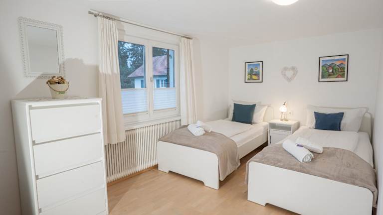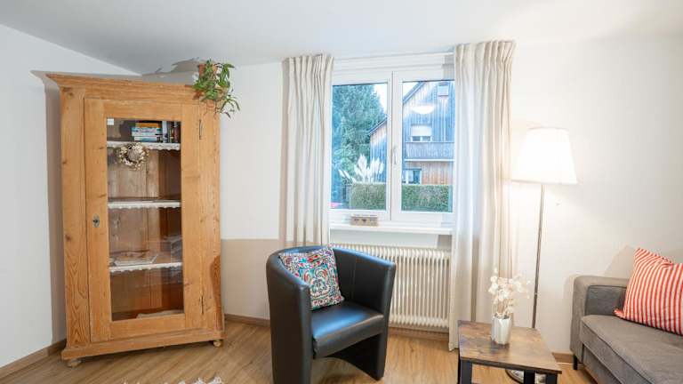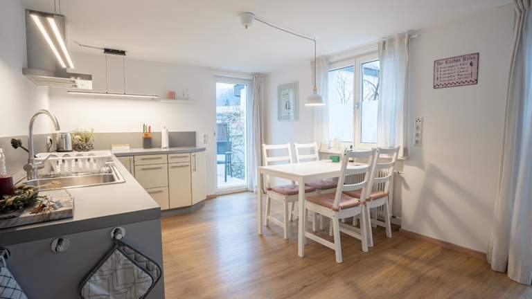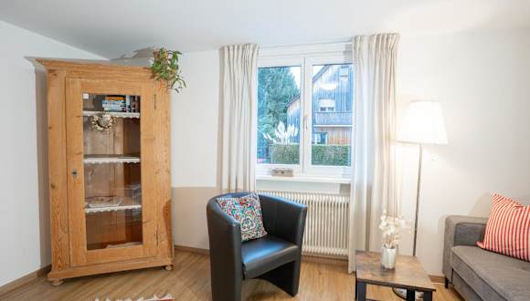 Die Ferienwohnung im Chalet zum See umfasst 2 Schlafzimmer, ein Wohnzimmer mit Flachbild-TV und eine gut ausgestattete Küche mit Kühlschrank und Geschirrspüler. Zusätzlich stehen ein Badezimmer mit Dusche sowie ein Balkon mit Bergblick zur Verfügung. Handtücher und Bettwäsche werden bereitgestellt.