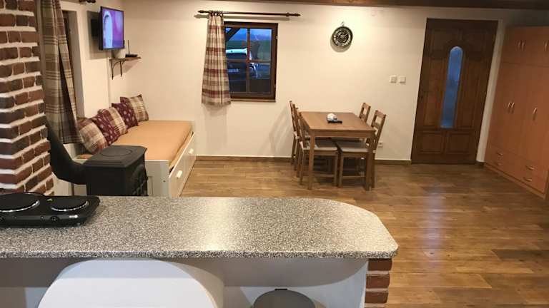 Chaloupka Stanětice bietet Übernachtungsmöglichkeiten in einer heimeligen Villa mit einer Terrasse und Blick auf die Berge. Die Unterkunft wird von einem privaten Gastgeber geführt, und es sind keine Junggesellen-/Junggesellinnenabschiede oder ähnliche Feiern erlaubt. Es werden Handtücher und Bettwäsche zur Verfügung gestellt, und die Villa ist mit einem kostenlosen Privatparkplatz ausgestattet.