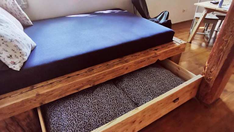 Das Ferienhaus verfügt über Klimaanlage, zwei Schlafzimmer, ein Wohnzimmer und eine voll ausgestattete Küche mit Kühlschrank und Kaffeemaschine. Ein Badezimmer mit Dusche und Haartrockner ist ebenfalls vorhanden. Handtücher und Bettwäsche werden zur Verfügung gestellt.