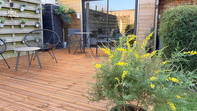 Die Ferienwohnung ist ausgestattet mit einem Schlafzimmer, einem Badezimmer, Bettwäsche, Handtüchern sowie einem Flachbild-TV mit Satellitenkanälen. Zudem gibt es einen Essbereich, eine voll ausgestattete Küche und eine Terrasse mit Gartenblick.