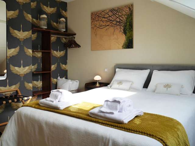 Chambres d'Hôtes La mésange à tête Bleue bietet eine heimelige Atmosphäre mit einem schönen Garten, der einen Blick ins Grüne ermöglicht. Gäste profitieren von Private Parkiermöglichkeit und kostenlosem Wifi, was den Aufenthalt angenehm und praktisch gestaltet. Das Bed & Breakfast ist klimatisiert und mit einem Flachbild-TV ausgestattet. Handtücher und Bettwäsche sind ebenfalls erhältlich.