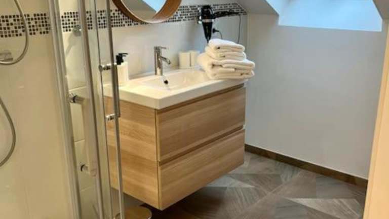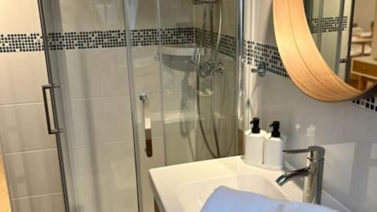 Die Ferienwohnung umfasst 1 Schlafzimmer und eine gut ausgestattete Küche mit Kühlschrank und Geschirrspüler. Das Badezimmer ist mit einer Dusche, einem Haartrockner und einer Waschmaschine ausgestattet. Handtücher und Bettwäsche werden zur Verfügung gestellt.