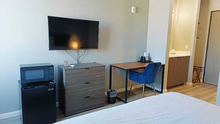 Die Zimmer sind ausgestattet mit einem Schreibtisch, einem Flachbild-TV, einem eigenen Badezimmer sowie Bettwäsche und Handtüchern. Zusätzlich steht den Gästen ein Kühlschrank zur Verfügung.