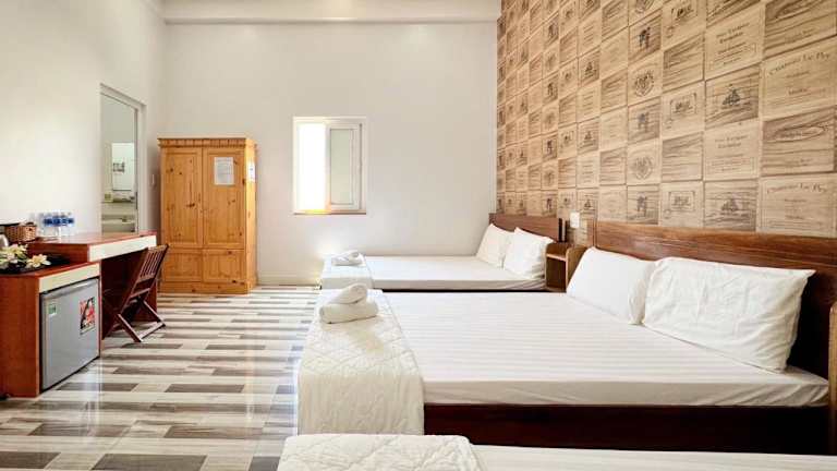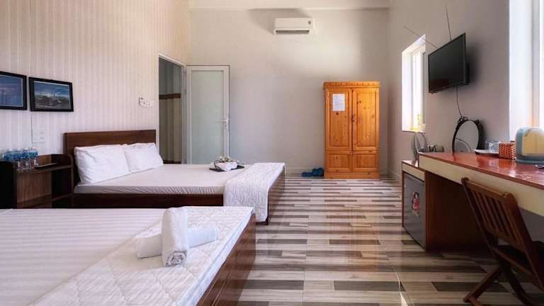 Die Zimmer im Chan Hotel Dao Phu Quy sind mit einem Balkon ausgestattet und bieten zudem eine Klimaanlage, einen Schreibtisch, eine Terrasse mit Stadtblick sowie ein eigenes Badezimmer. Zur Ausstattung gehören ebenfalls ein Flachbild-TV, Bettwäsche, Handtücher und ein Kühlschrank.