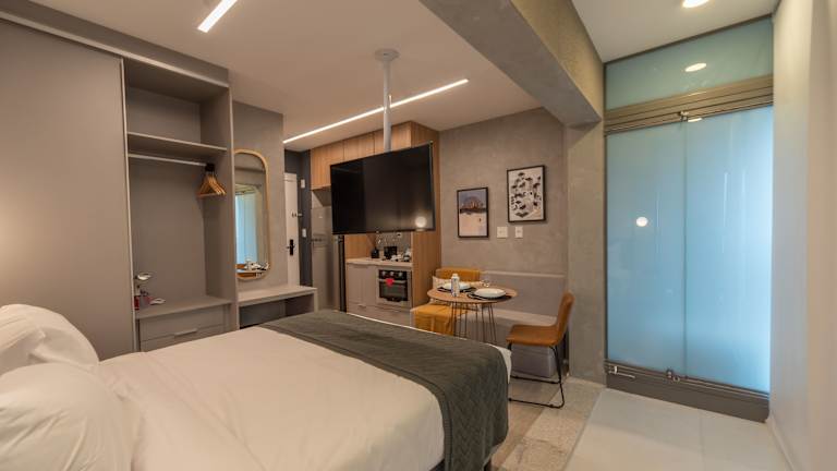 Das Vitrali Moema Studios befindet sich in São Paulo, 3,8 km vom Parque do Ibirapuera und 4,2 km vom Pavilhão Ciccillo Matarazzo entfernt. Der Flughafen São Paulo-Congonhas liegt in einer Entfernung von 5 km.