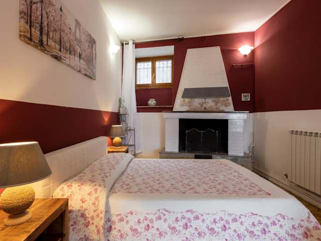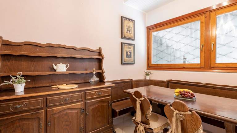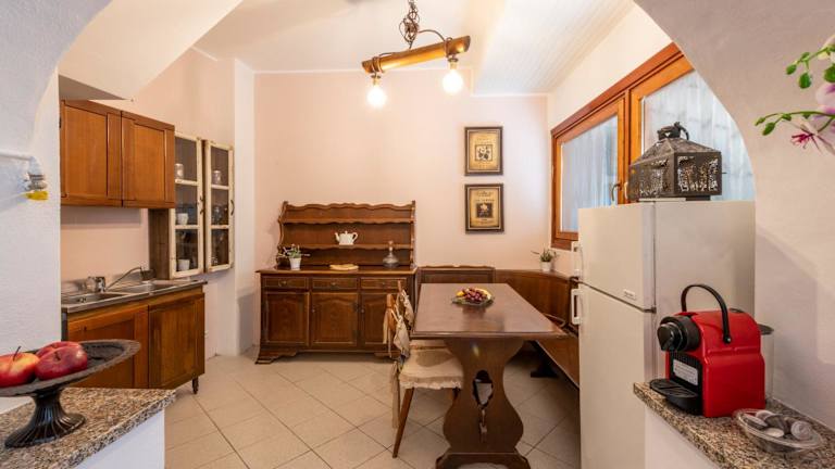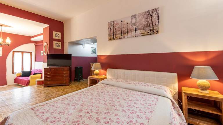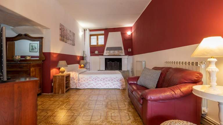 Die Ferienwohnung umfasst ein Schlafzimmer, ein Wohnzimmer, ein Badezimmer mit Bidet sowie eine gut ausgestattete Küche mit Kühlschrank und Geschirrspüler. Eine Veranda mit Blick auf die Berge sowie Gartenblick ist ebenfalls vorhanden. Handtücher und Bettwäsche werden zur Verfügung gestellt.