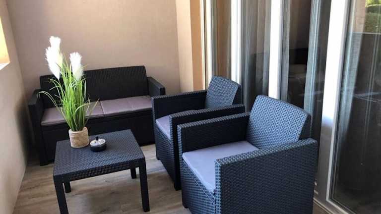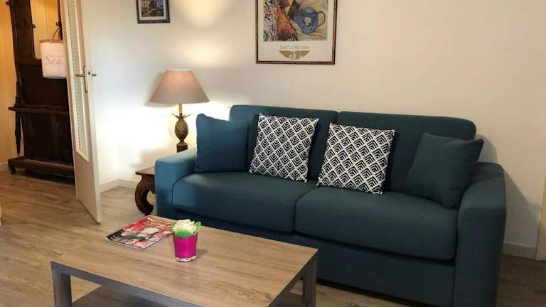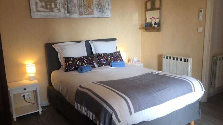 Die Ferienwohnung besteht aus einem Schlafzimmer und einem Wohnzimmer mit einer voll ausgestatteten Küche, die einen Kühlschrank und eine Kaffeemaschine beinhaltet. Zudem gibt es ein Badezimmer mit Bidet und Dusche. Handtücher und Bettwäsche werden bereitgestellt.