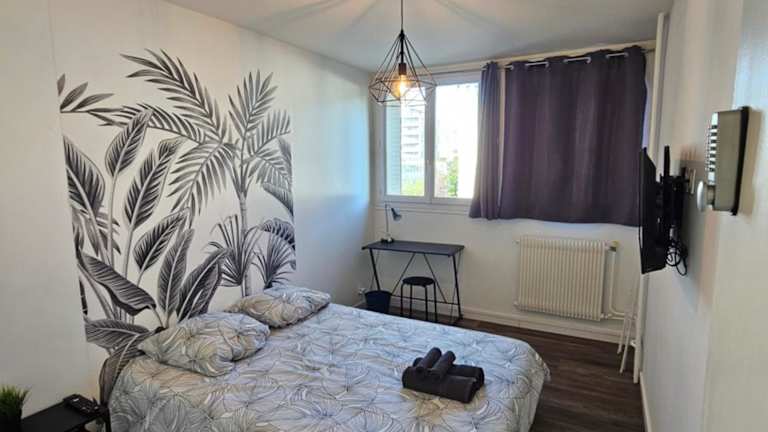 Charmant & spacieux 3 chambres - MM Apartment - Lyon Grand Parilly bietet Übernachtungsmöglichkeiten in einer heimeligen Atmosphäre. Die Unterkunft ist mit einem Garten ausgestattet und verfügt über eine Gemeinschaftsküche sowie eine Gemeinschaftslounge, wo Gäste relaxen können. Zudem können Gäste den Ausblick auf die Stadt und den Garten geniessen.