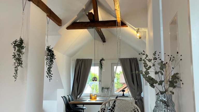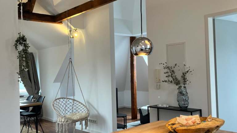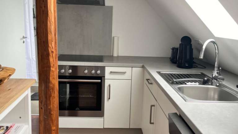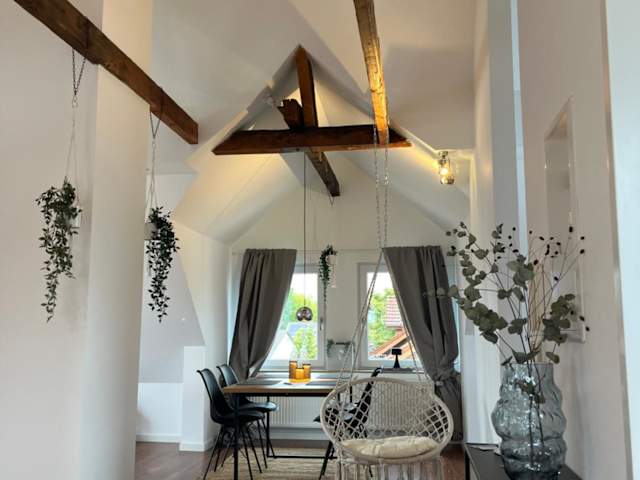 Die charmante Dachgeschosswohnung bietet Übernachtungsmöglichkeiten mit Gartenblick und kostenfreiem WLAN. Ein kostenloser Privatparkplatz steht zur Verfügung. Die Unterkunft wird von einem privaten Gastgeber geführt und ist für Gäste ab einem Mindestalter von 18 Jahren zugänglich. Feierlichkeiten wie Junggesellenabschiede sind nicht gestattet. In der Unterkunft wird Hygiene großgeschrieben, da regelmäßige Desinfektionsmaßnahmen zwischen den Aufenthalten durchgeführt werden.