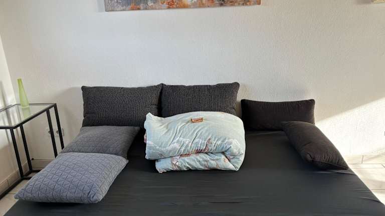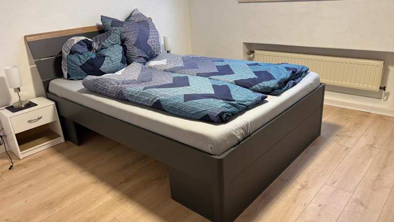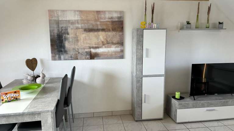 Die Ferienwohnung umfasst ein Schlafzimmer, ein Wohnzimmer und eine voll ausgestattete Küche mit Kühlschrank und Kaffeemaschine. Ein Badezimmer mit Dusche und Haartrockner ist ebenfalls vorhanden. Handtücher und Bettwäsche werden bereitgestellt.